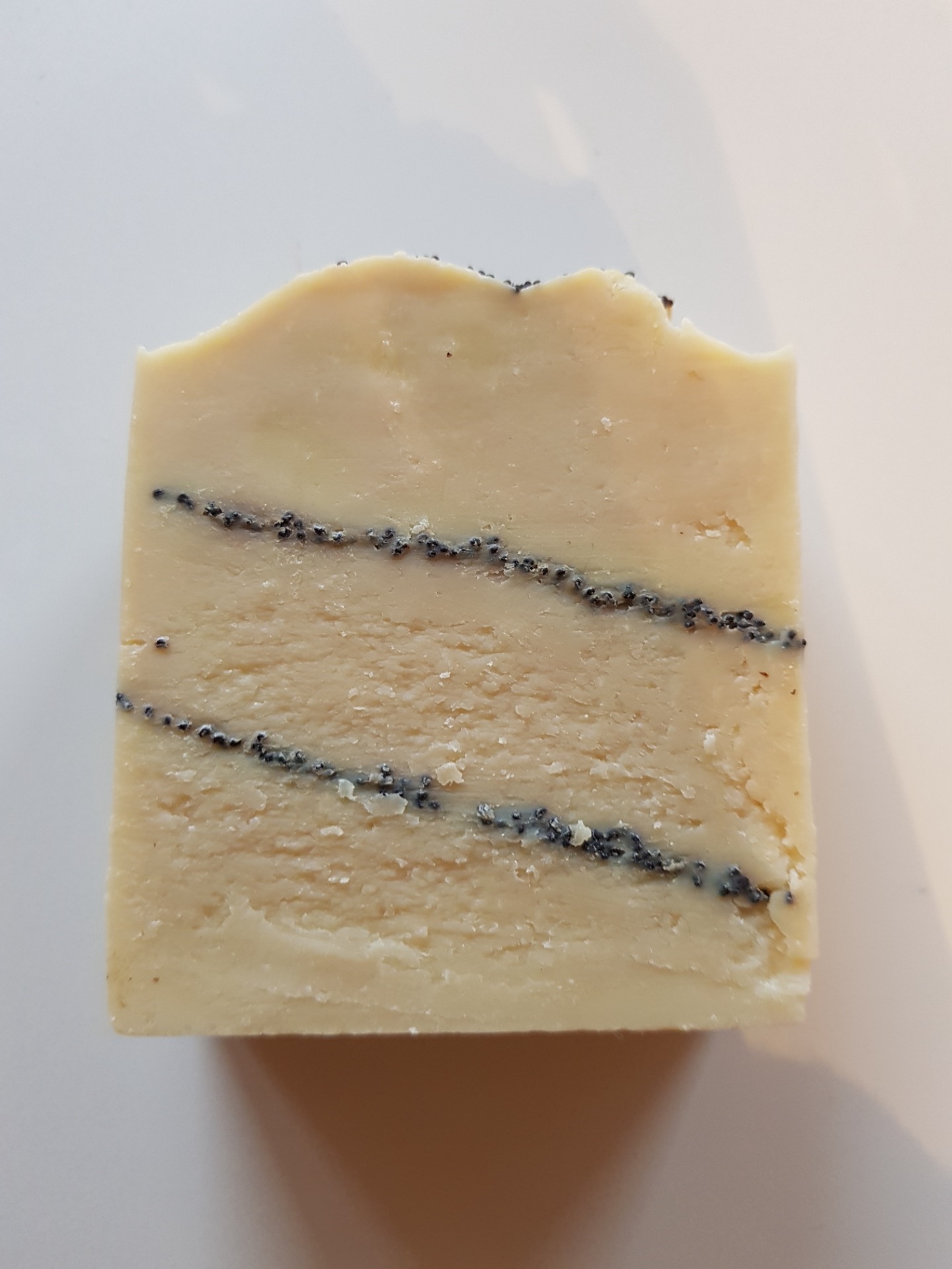 Inhaltsstoffe: Kokosfett*, Mangobutter, Olivenöl*, Rizinusöl, Rapsöl*, Mohnsamen, Wasser, NaOH